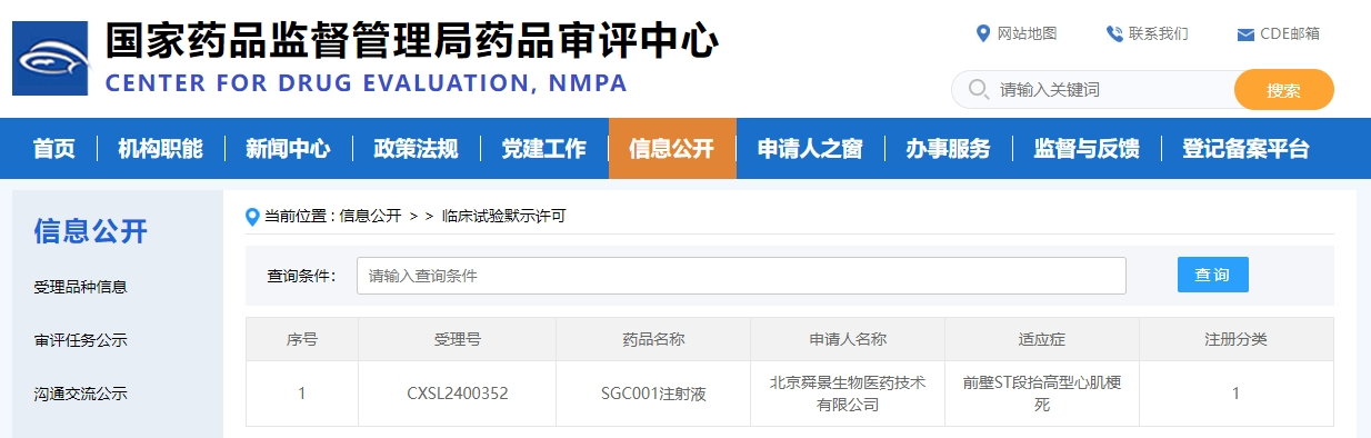 2024年08月05日,由熱景生物(SH.688068)孵化的創新藥公司北京舜景生物醫藥技術有限公司(以下簡稱舜景醫藥)研制的全球首款創新藥SGC001注射液成功獲得國家藥品監督管理局藥品審評中心臨床試驗默示許可。這是繼2024年05月22日該產品獲得美國FDA臨床試驗(IND)許可之后又一里程碑事件。