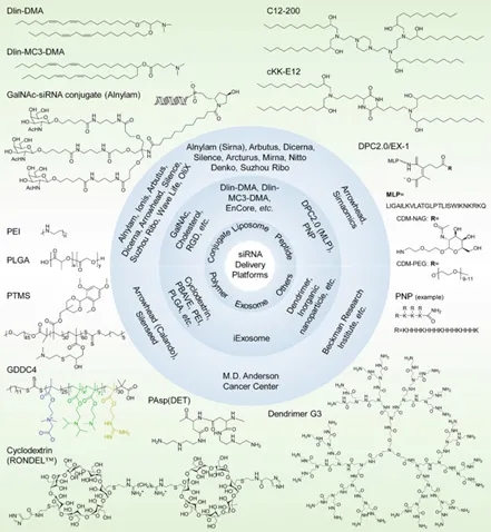 圖注:經過臨床前和臨床評估的siRNA遞送平臺